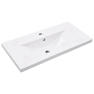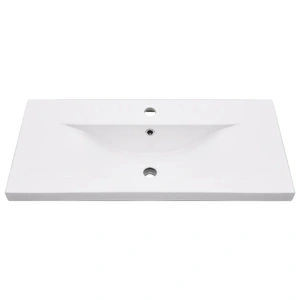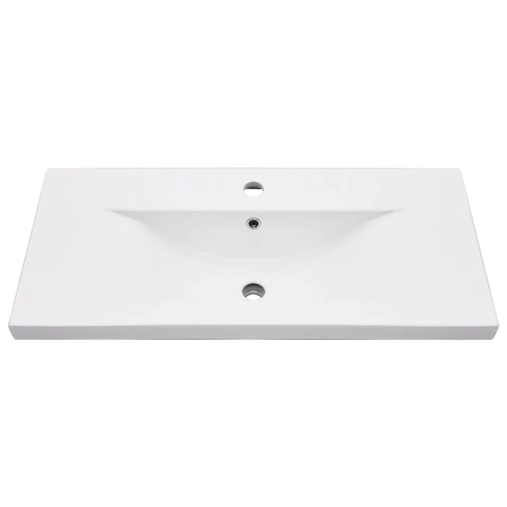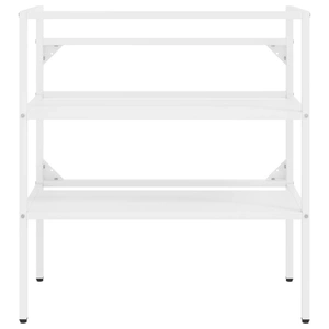 This bathroom washbasin frame with a bulid-in basin is a perfect match for your bathroom or washroom with a clean, tidy appearance. The wash stand is made of powder-coated iron, making it stable and durable. This washbasin frame gives easy access to towels and baskets and creates a more ample space than closed storage. Made of ceramic, the basin can not only serve as a vessel for daily use but also as an adornment in your living space. Thanks to its trendsetting and contemporary design, this washbasin will definitely suit any decor. An overflow is also equipped to flow water out when it gets too full. Its glazed surface brings itself a modern yet elegant design. Additionally, the washbasin frame and basin are easy to clean with a damp cloth. Please note: The tap and the drain are not included in the delivery.