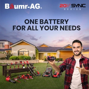The Baumr-AG SYNC Series is here! And the NEW LT3 20V Lithium Line Trimmer is at the frontline providing the economic and practical way to take control of your garden, and for added benefit, all garden tools within the SYNC Series are all operable with the same 20V lithium battery.