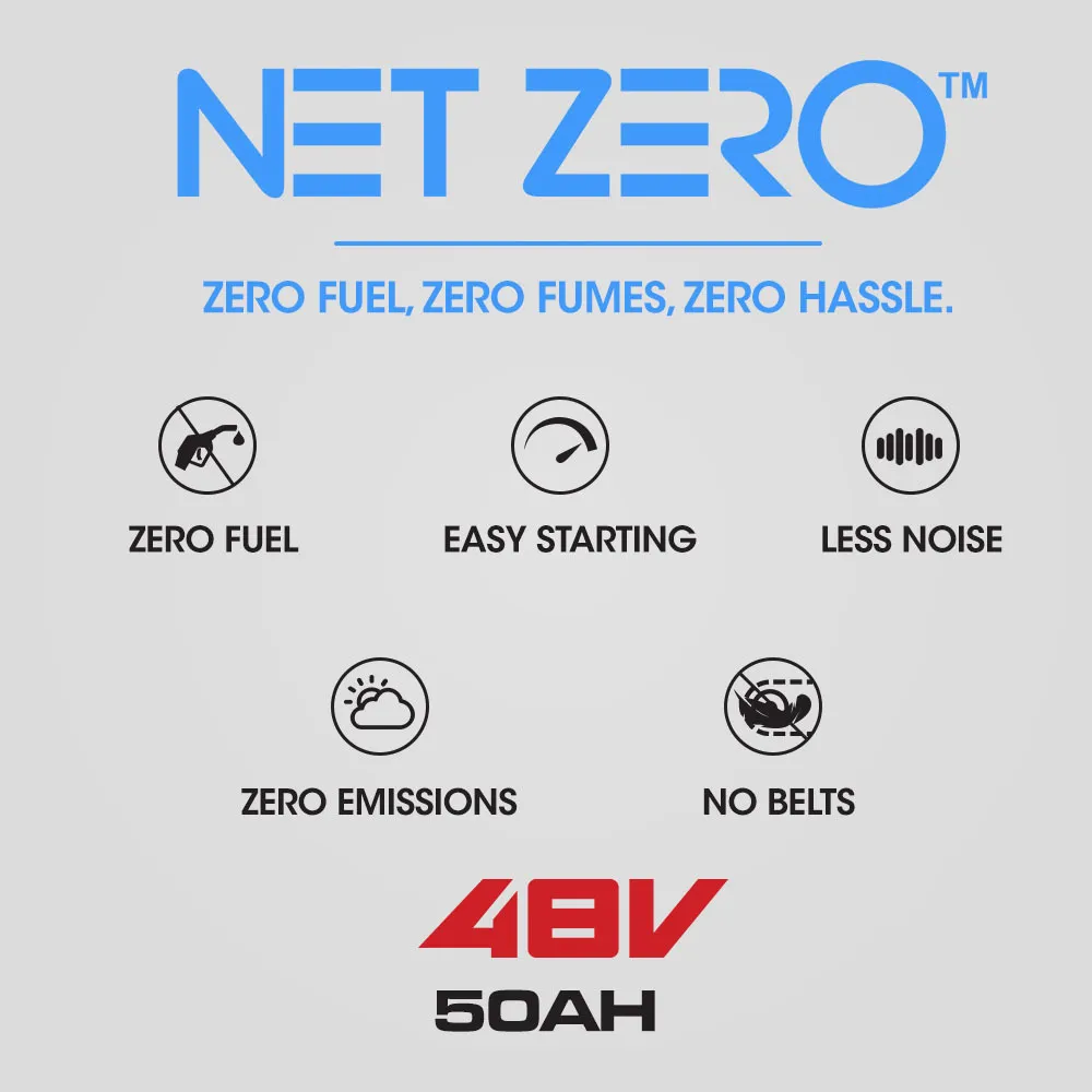 The Baumr-AG 360RX Net Zero is an all electric, battery powered, state-of-the-art ride on mower!
