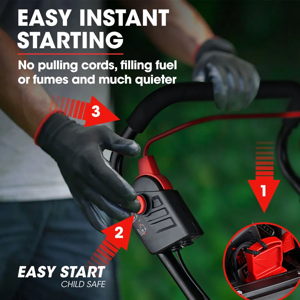 Baumr-AG continues to deliver innovative gardening tools with this addition to the cordless SYNC range – the 17” 40V Brushless 500CX Lawn Mower. With its powerful advanced brushless motor it slices through tough grass with ease! Being a cordless electric mower it starts humming in an instant via the child safe starting system, and there’s no messing about with fuel, fumes or maintenance hassles.
