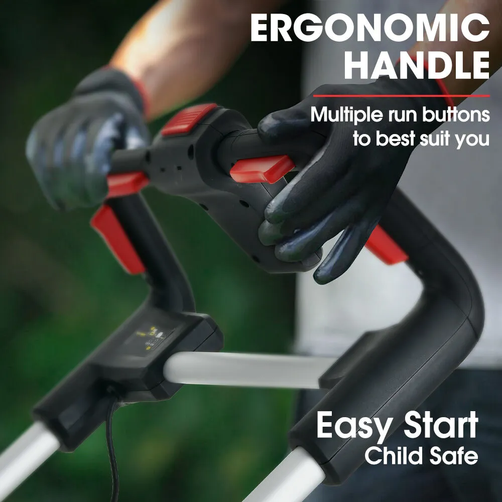The adjustable ergonomic handle lets you customise the length and angle for the ideal grip, reducing fatigue during use. And when you're done, the mower folds in seconds for compact upright storage, saving valuable shed space.