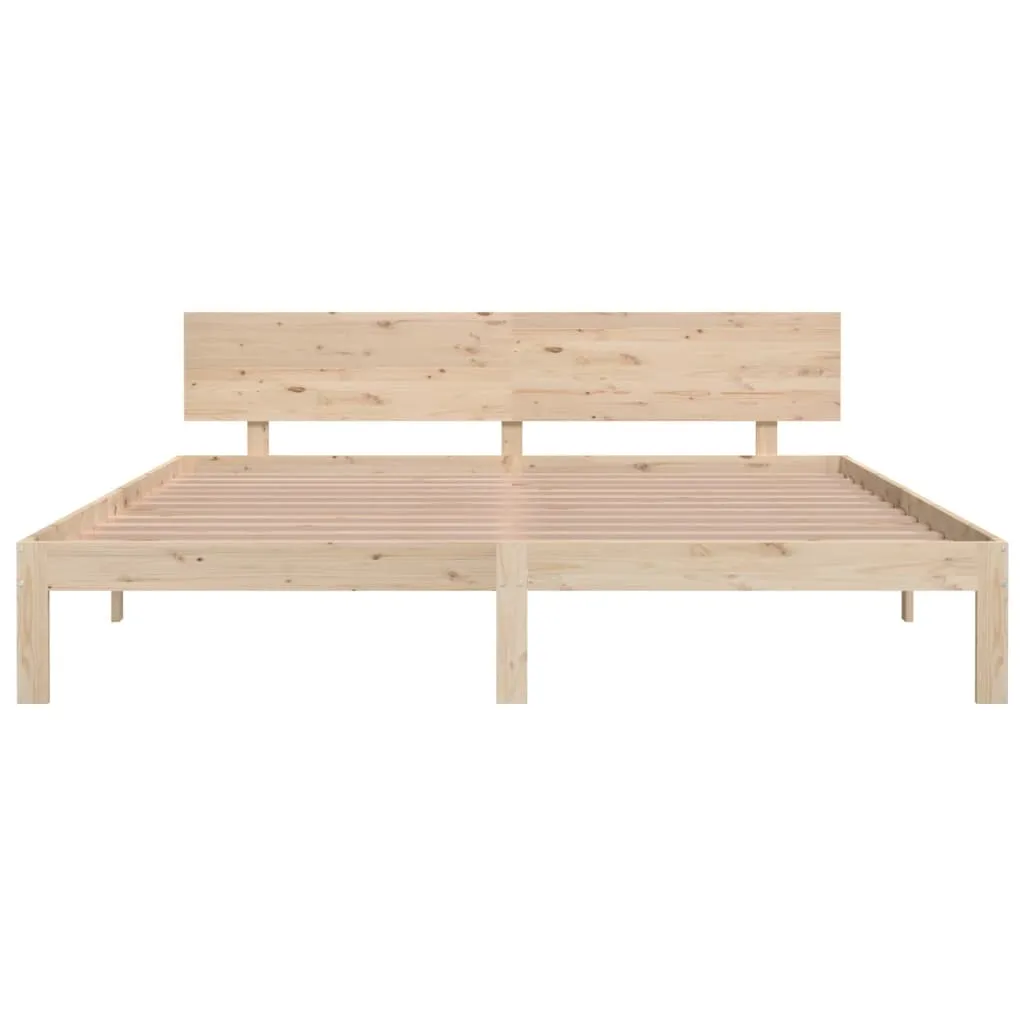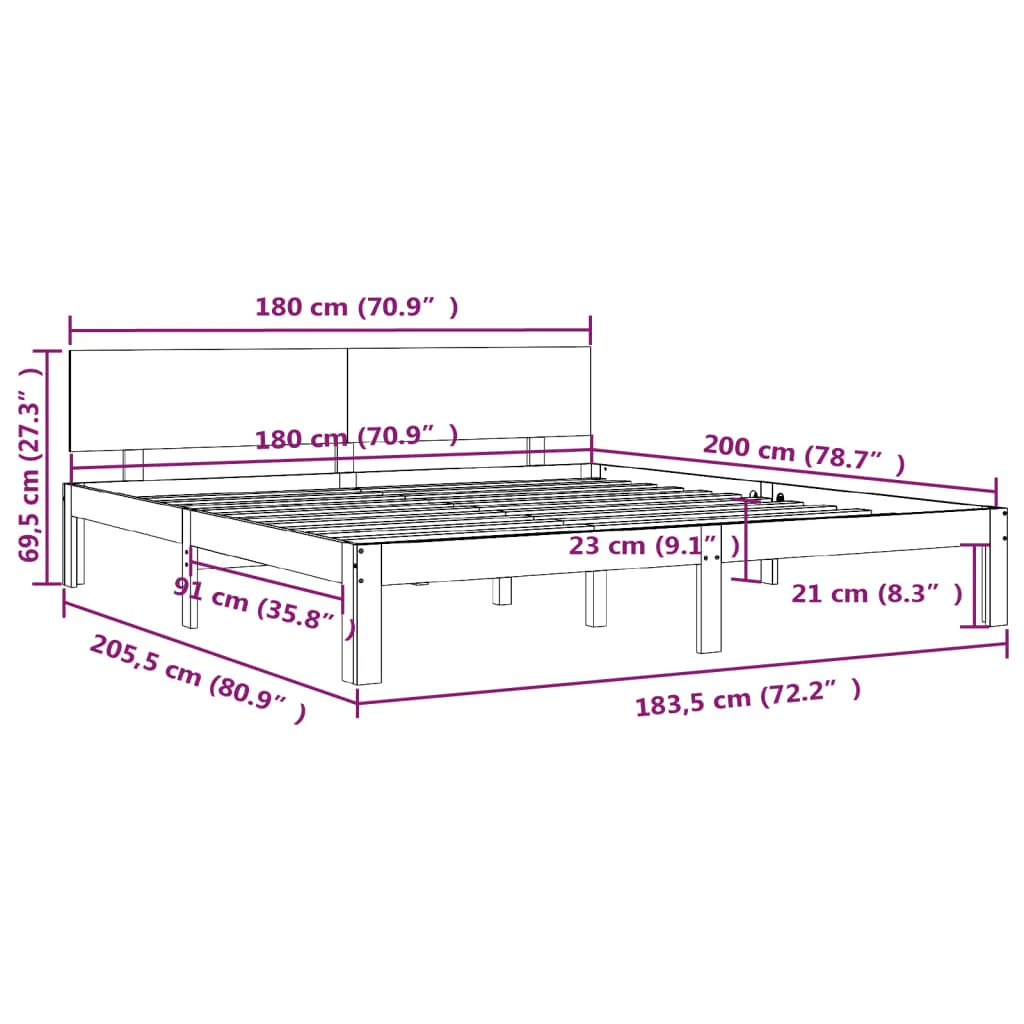 Take the modern route to your bedroom with this wooden bed frame! It makes a practical and decorative addition to your interior. Premium solid wood: Solid pine wood is a beautiful natural material. Pine wood has a straight grain, and the knots give the material its signature, rustic look.Sturdy bed frame: The wooden frame ensures sturdiness and stability. The solid pinewood slats provide additional support for your bed. It extends the lifetime of your mattress by absorbing most of the stress and weight on the bed.Comfortable headboard: The classic headboard let you rest comfortably while reading or watching a movie. Note:The delivery includes a bed frame only. The mattress is not included. You can check our shop for the matching mattresses.This bed frame is suitable for a mattress measuring 183 x 203 cm (AU King Size).