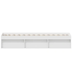 Take the modern route to your bedroom with this bed frame! It will make a practical and decorative addition to your interior. Durable material: The engineered wood is of exceptional quality with smooth surface and also features strength, stability and resistance to moisture.Plywood slats: The plywood slats provide good weight distribution, ensuring that the mattress stays in place with every twist and turn of your body during sleep.Extra storage space: The guest bed has a total of 6 compartments on two sides of the bed to store things like books, potted plants and other decorations. Good to know:A mattress is not included with this bed. We do offer a various selection of mattresses. You can check our shop for a matching mattress.