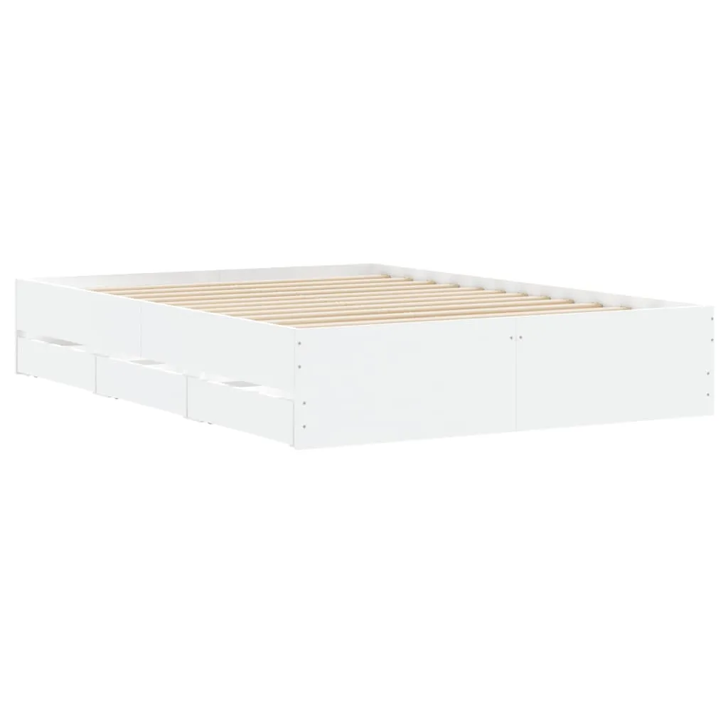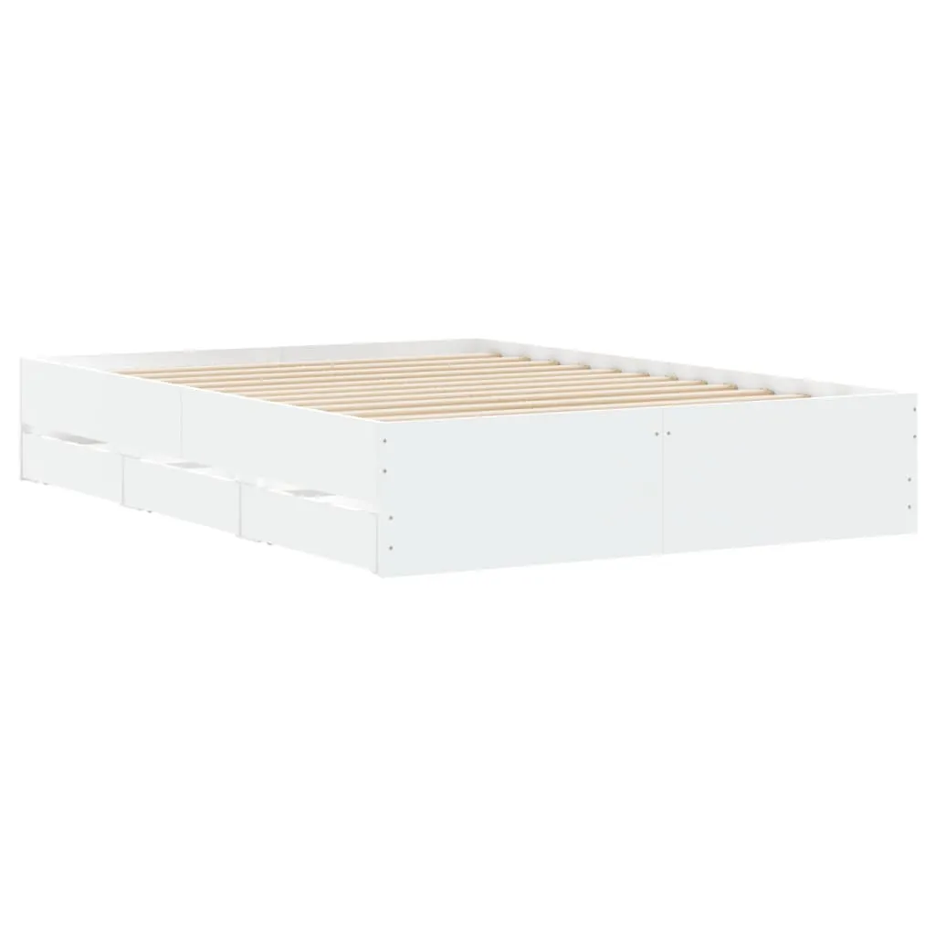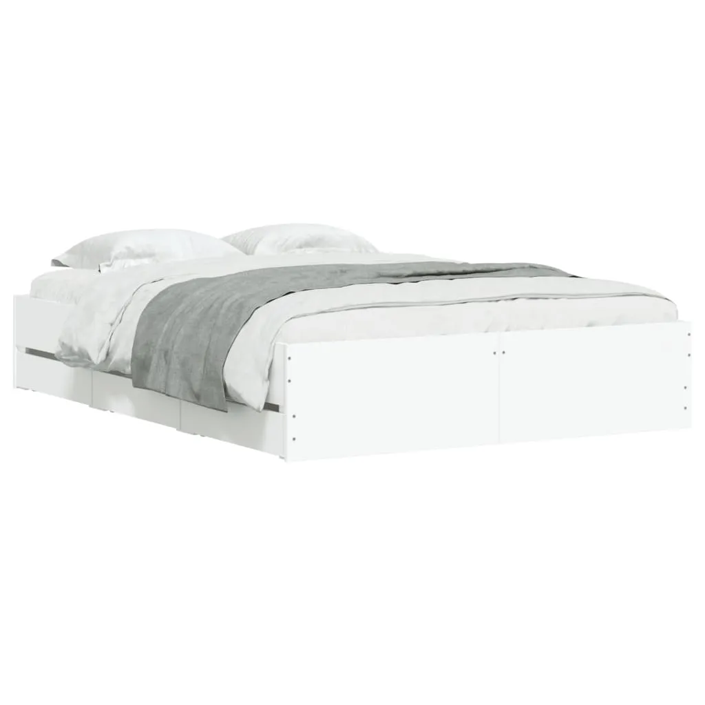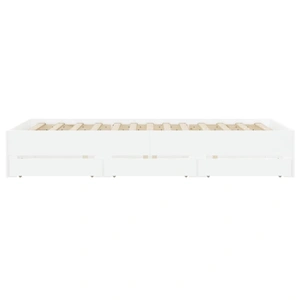 Add a modern touch to your bedroom with this bed frame with drawers! It makes a practical and decorative addition to your living space. Durable material: The bed frame is made of engineered wood. The engineered wood is of exceptional quality with a smooth surface and also features strength, stability, and resistance to moisture.Sturdy slats: The plywood slats provide good weight distribution, ensuring the mattress stays in place with every twist and turn of your body during sleep.Storage function: The included bed drawers provide ample storage space for storing your essentials, keeping your room clean and tidy. Good to know:A mattress is not included with this bed. We do offer a various selection of mattresses. You can check our shop for a matching mattress.