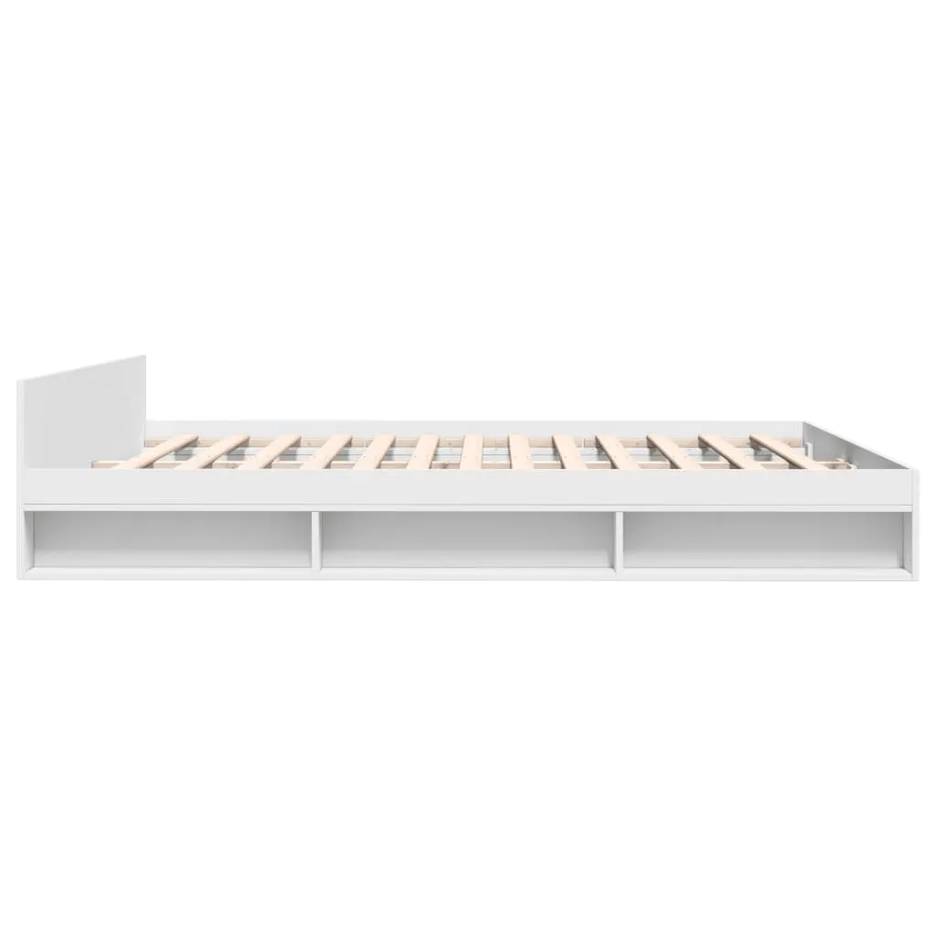 Add a modern touch to your bedroom with this bed frame with drawers! It makes a practical and decorative addition to your living space. Durable material: The bed frame is made of engineered wood. The engineered wood is of exceptional quality with a smooth surface and also features strength, stability, and resistance to moisture.Sturdy slats: The plywood slats provide good weight distribution, ensuring the mattress stays in place with every twist and turn of your body during sleep.Storage function: The included bed drawers and side compartments provide ample storage space for storing your essentials, keeping your room clean and tidy. Good to know:A mattress is not included with this bed. We do offer a various selection of mattresses. You can check our shop for a matching mattress.