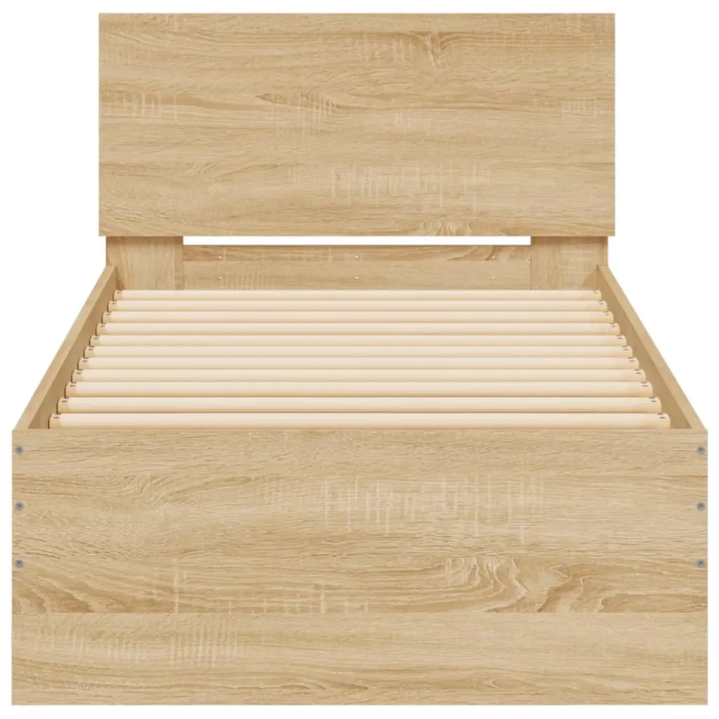Get a better restful night's sleep from this bed frame with headboard and LED lights! It makes a welcoming addition to any bedroom. Durable material: The engineered wood is of exceptional quality with smooth surface and also features strength, stability and resistance to moisture.RGB LED lights: The bed frame is equipped with vibrant RGB LED lights. With various customisable menus, you can effortlessly change the colour of the lights and even set them to adjust automatically. These LED lights not only enhance the contemporary look of the bed base but also add to its trendy appeal.Excellent support: The bed headboard provides you with excellent back support while you're sitting up in bed to read or watch TV.Sturdy slats: The plywood slats provide good weight distribution, ensuring that the mattress stays in place with every twist and turn of your body during sleep. Good to know:A mattress is not included with this bed. We do offer a various selection of mattresses. You can check our shop for a matching mattress.The product has a USB connector that requires a certified 5V USB power source (not included).