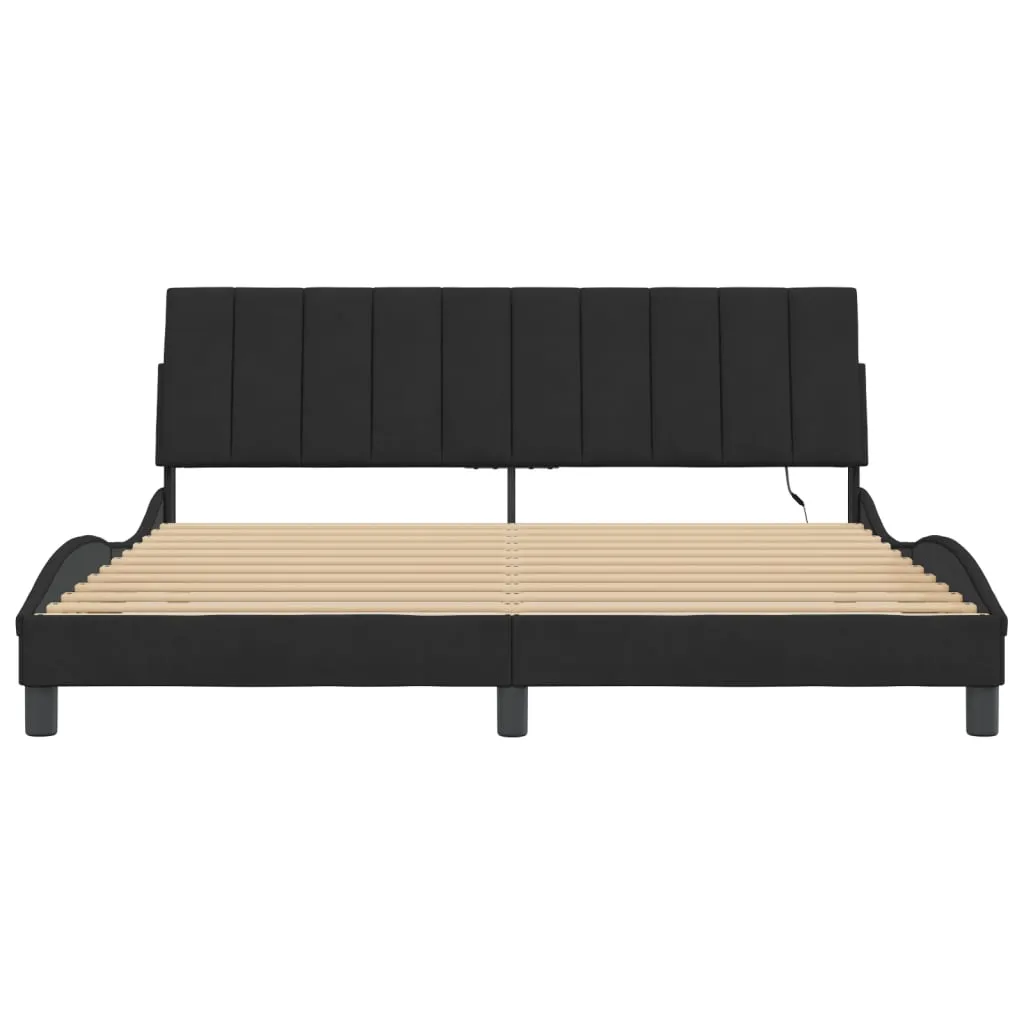 Get a better restful night's sleep from this bed frame with LED lights! It makes a welcoming addition to any bedroom. Soft velvet: Velvet is a soft and comfortable fabric that feels nice against the skin.Plywood slats: The plywood slats provide good weight distribution, ensuring that the mattress stays in place with every twist and turn of your body during sleep.Excellent support: The bed header provides you with excellent back support while you're sitting up in bed to read or watch TV.Colourful LED strip: Bring playfulness into darkness with colourful LED lights! The hook and loop fasteners on the back of the headboard cushion can be used to secure the LED lights.Waved side design: The waved look of the bed frame is stylish and sophisticated, adding a modern and elegant touch to your decor, making it the focal point of your bedroom. Good to know:A mattress is not included with this bed. We do offer a various selection of mattresses. You can check our shop for a matching mattress.The product has a USB connector that requires a certified 5V USB power source (not included).
