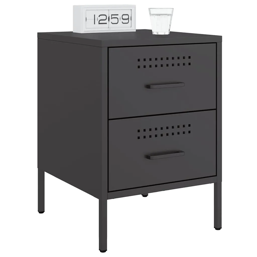 These bedside cabinets with an industrial style make a timeless addition to your interior decor. Robust and stable frame: Steel is strong, stable, and durable, making it an ideal choice for a wide range of applications, from furniture manufacturing to construction.Ample storage space: The bedside table with 2 drawers provides ample storage space for keeping your various daily essentials well-organised and within easy reach.Easy to clean: The steel nightstand is moisture-resistant and easy to clean with a damp cloth.Multifunctional design: This cabinet is ideal to serve as a nightstand next to your bed, a side table next to the couch in the living room, or as an additional cabinet in the study.Displaying function: You can also place your favourite photos, decorations or flowers on top of the bedside table to enrich your life. Warning:To prevent it from tipping over, this product must be used with the provided wall attachment device.