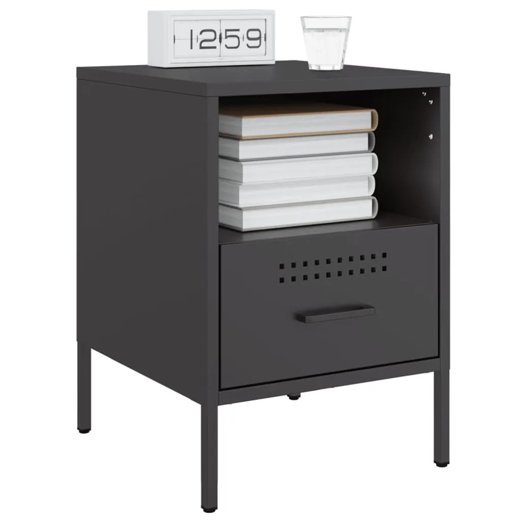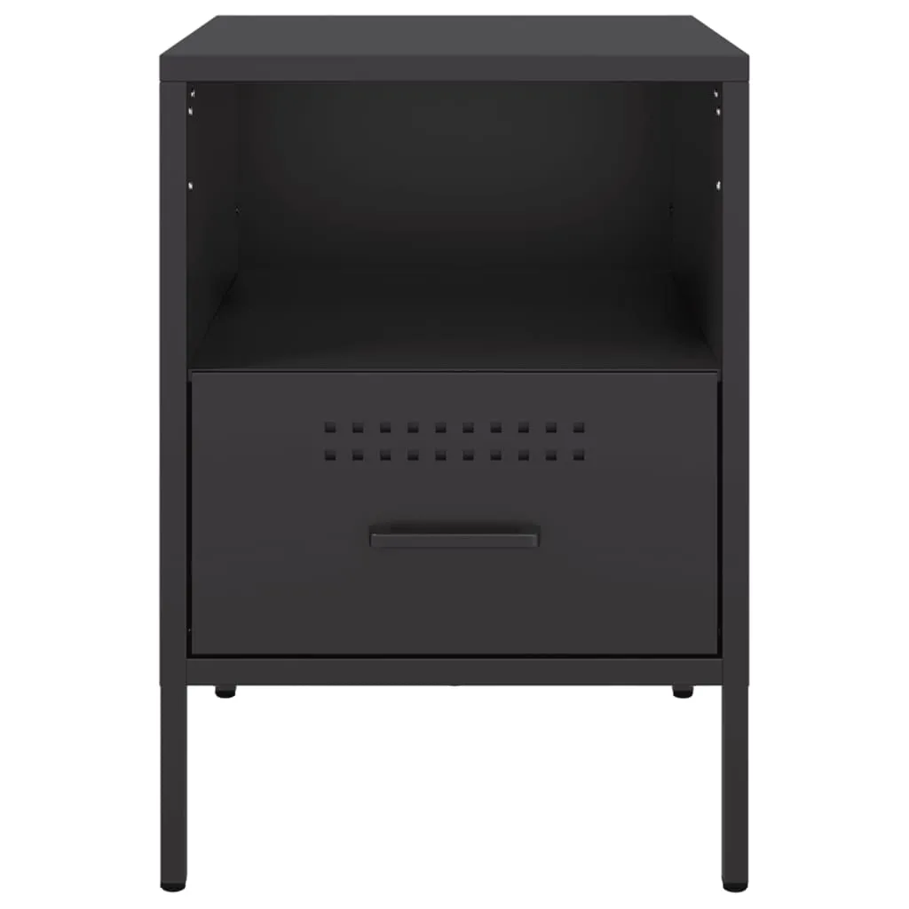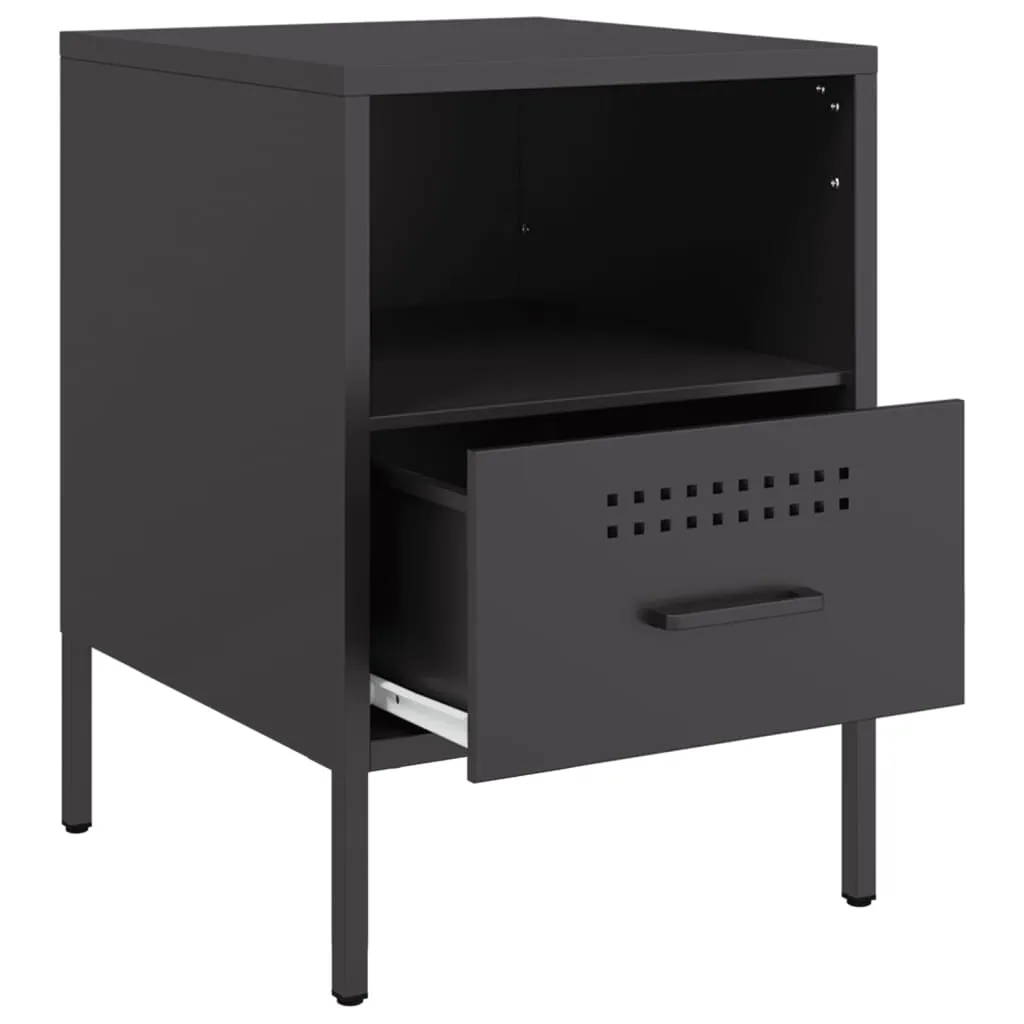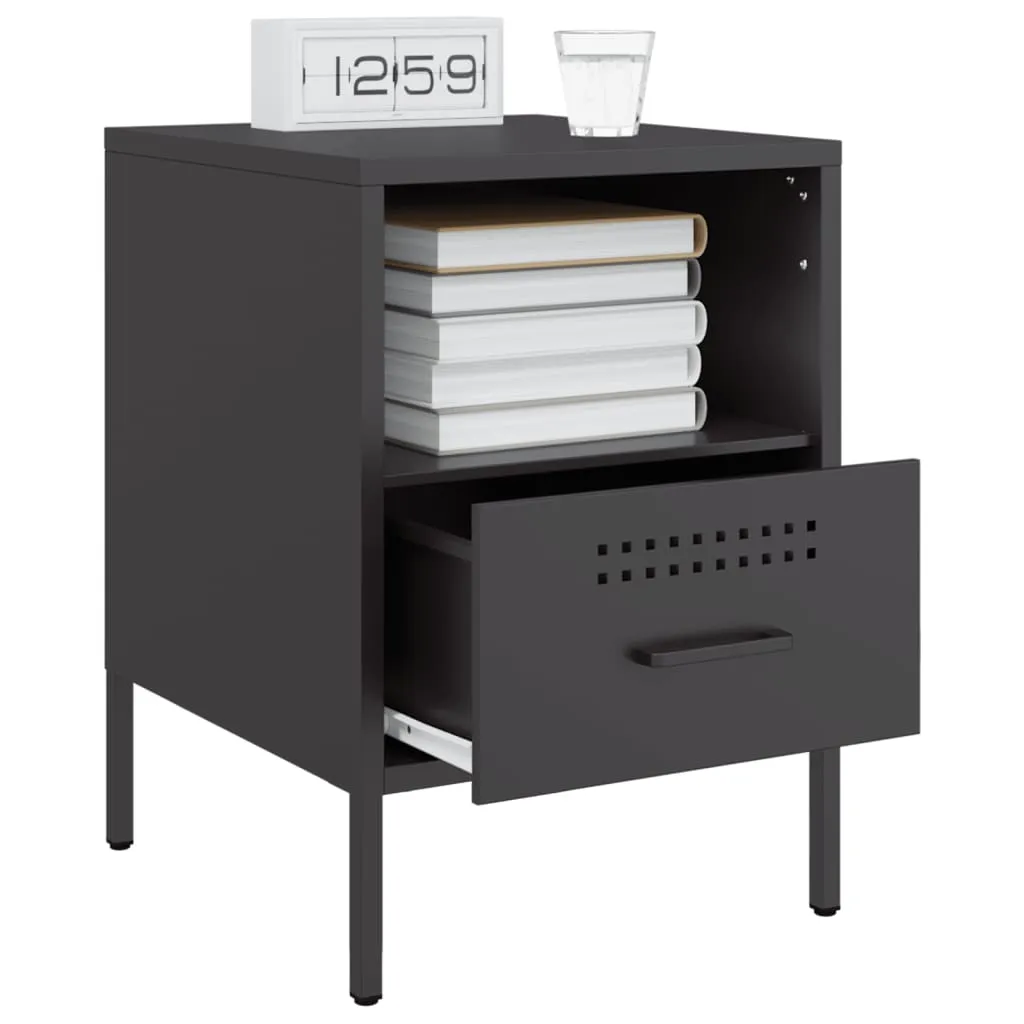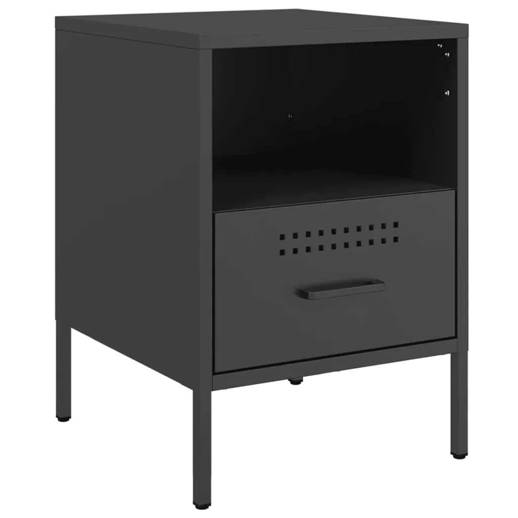 These sturdy bedside cabinets with an industrial style makes a timeless addition to your living room or bedroom. Stable material: The cabinet's frame is made of cold-rolled steel. Cold-rolled steel is a kind of low-carbon steel produced by a "cold rolling" method and processed at near normal room temperatures. Cold-rolled steel has a smoother surface, greater strength, and higher precision.Ample storage space: This bedside table provides ample storage space for keeping your magazines, books, DVDs, remote control and other small items well-organised and within reach.Adjustable screw feet: This side cabinet is equipped with four adjustable screw feet to compensate for uneven floors, ensuring stability and balance.Easy to clean: The metal cabinet is easy to clean with a damp cloth and requires less maintenance. Warning:To prevent it from tipping over, this product must be used with the provided wall attachment device.