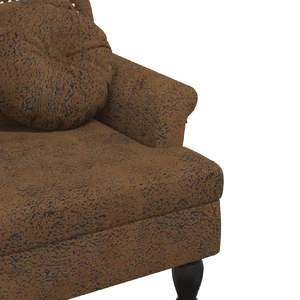 Whether you're looking to create a cosy seating area in your home or a functional and stylish piece for your office, this elegant bench is an excellent choice. Durable material: The faux suede leather consists of extremely fine fibers that are particularly resistant to stains. Faux suede leather is a great choice for furniture upholstery due to its durability and easy cleaning.Comfortable seating: The bench seat is highly comfortable with the thickly padded seat, backrest, armrests and back cushions.Elegant design: The bench chair features button tufts, rolled armrests, a backrest with arc lines and antique-styled legs, which adds a touch of elegance to your home decor.Wooden feet: The solid rubber wood feet give the product a natural and pleasant look while ensuring stability. It can blend well with any interior decor.Sturdy and stable frame: The plywood frame of the bench seating ensures sturdiness and stability.