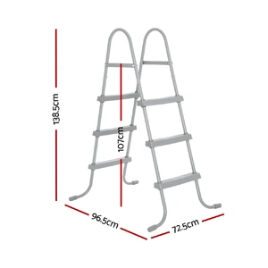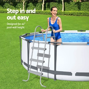 Designed to work in tandem with a 42-inch (107cm for the metric fans) wall height above-ground swimming pool, the Bestway Pool Ladder features heavy-duty plastic steps that are non-slip and removable. The white metal frame is corrosion-resistant and the base is flared to ensure a more stable support when climbing up and down the ladder. Not least, the lightweight ladder is convenient to move around and effortless to install. So get ready to rise up to some splashing good times this summer with the Bestway Pool Ladder. Get yours today.