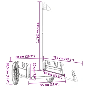 This bike trailer is perfectly suited for all transport purposes by connecting it to your bicycle. Robust construction: This bike trailer has a sturdy construction that is made of powder-coated iron. Iron is a strong and hard material. It's a solid favourite in industrial and furniture construction. The powder coating on the surface of iron creates a protective layer against rust, corrosion, and wear.Durable material: This bicycle trailer is made from oxford fabric which is lightweight, water-resistant, and also resistant to damage and dirt. The yarn used for weaving makes the fabric durable and breathable. It is also naturally resistant to wrinkles.Safe riding: The bicycle cargo trailer has two large wheels that allow for smooth and superior tracking on various grounds, and the reflectors on the rear provide visibility in the dark, plus the flag can increase traffic safety.Wide applications: Easy to be attached to your bicycle, this bike cart can carry whatever you need to take with you, such as luggage, plants, tools, or groceries.
