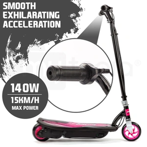 The Bullet ZPS electric scooter boasts striking pink decals on the FlowGripTM deck which offers plenty of control for safe riding. Thanks to the 140 watt motor it can zip along at speeds of up to 15km/h, which is fast enough for maximum fun, without causing chaos in the local park.