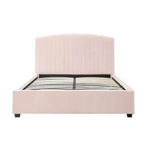 Camelia Bed has a nice designer Headboard and fully Upholstered Footboard. This type of bedhead has a royal feel in it. The headboard has fine quilting and linear designing on it. Its soothing baby pink colour would be a great fit for those who like colourful and cheerful vibe around them.