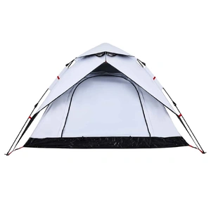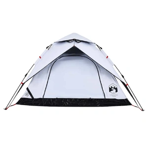 This family tent with a modern look protects you from the unpleasant weather and provides a comfortable place for anywhere adventures. All-round waterproof design: This camping tent, made from polyester with a PU coating, is waterproof and wind resistant. The taped seams effectively prevent rainwater infiltration, while the heavy-duty ground sheet helps maintain a dry and comfortable interior.White blackout fabric: The specially designed tent fabric blocks out 99% daylight, ensuring a cooler and more comfortable sleep environment. Say goodbye to early morning sunlight disturbances and enjoy a restful night's sleep.Quick-release system: Set up the tent effortlessly with the quick-release system! Lay the tent down, extend the pre-assembled poles until they lock into place, and you're all set!Detachable rainfly: The detachable rainfly can be attached to the tent's top for weather protection and privacy.Good ventilation & mosquito protection: The mesh walls not only offer excellent ventilation but also effectively keep insects at bay, ensuring a comfortable and bug-free experience for users.Convenient electrical cord access: The E-port allows you to easily connect an extension cord from an external power source to your tent. Warning:Keep all flame and heat sources away from this product fabric.