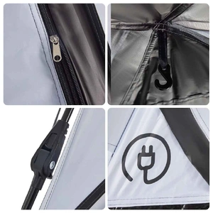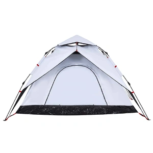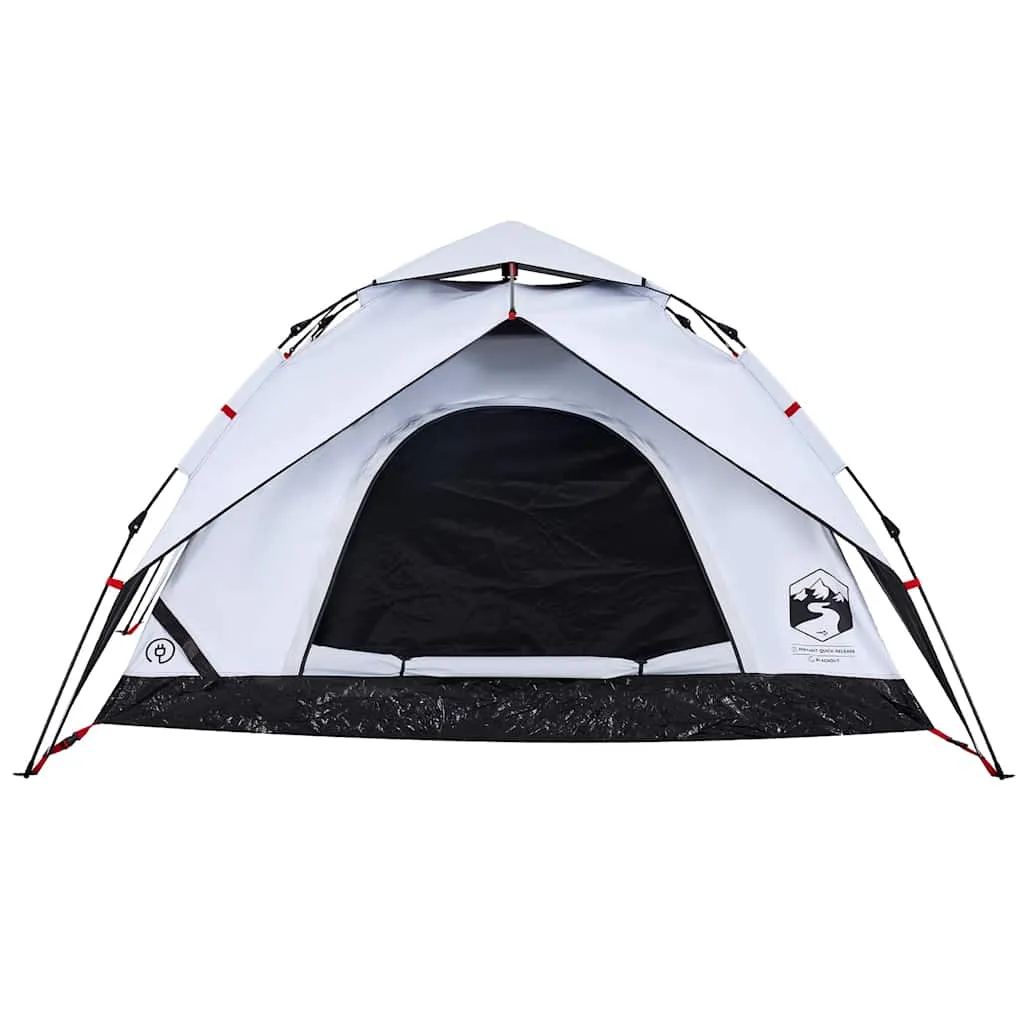 This family tent with a modern look protects you from the unpleasant weather and provides a comfortable place for anywhere adventures. All-round waterproof design: This camping tent, made from polyester with a PU coating, is waterproof and wind resistant. The taped seams effectively prevent rainwater infiltration, while the heavy-duty ground sheet helps maintain a dry and comfortable interior.White blackout fabric: The specially designed tent fabric blocks out 99% daylight, ensuring a cooler and more comfortable sleep environment. Say goodbye to early morning sunlight disturbances and enjoy a restful night's sleep.Quick-release system: Set up the tent effortlessly with the quick-release system! Lay the tent down, extend the pre-assembled poles until they lock into place, and you're all set!Detachable rainfly: The detachable rainfly can be attached to the tent's top for weather protection and privacy.Good ventilation & mosquito protection: The mesh walls not only offer excellent ventilation but also effectively keep insects at bay, ensuring a comfortable and bug-free experience for users.Convenient electrical cord access: The E-port allows you to easily connect an extension cord from an external power source to your tent. Warning:Keep all flame and heat sources away from this product fabric.