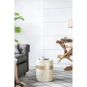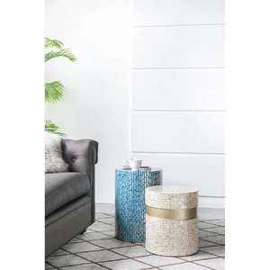 A round side table, stool or foot rest “ introducing the inspired resort side table. Adorned with discs of real sea shells that shimmer when they catch the light, this is a furniture piece that will instantly brighten and transform a space. Invest in a pair as bedside tables, use it as a stool for your desk, or as a stand-alone decor piece to rest a plant on, or even coffee table books