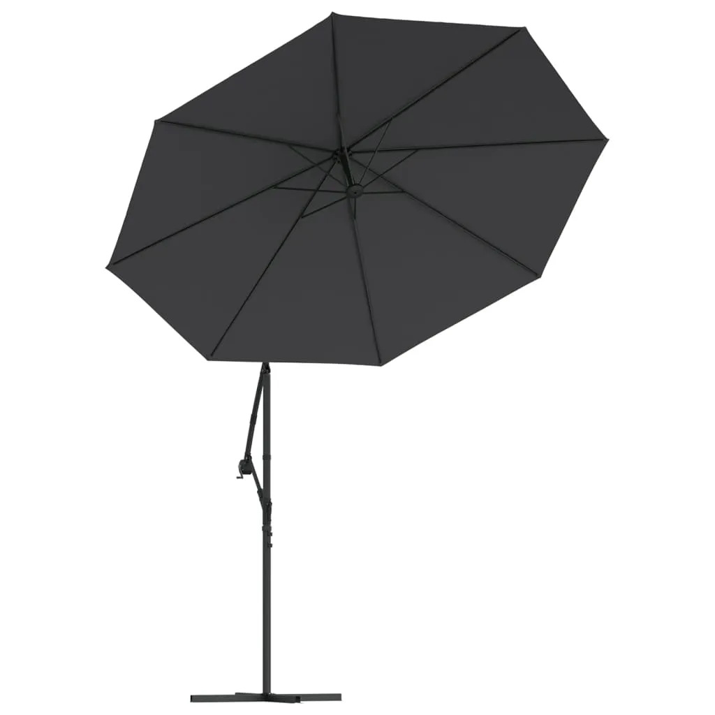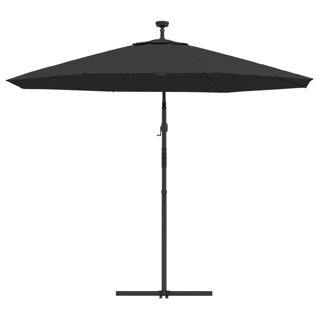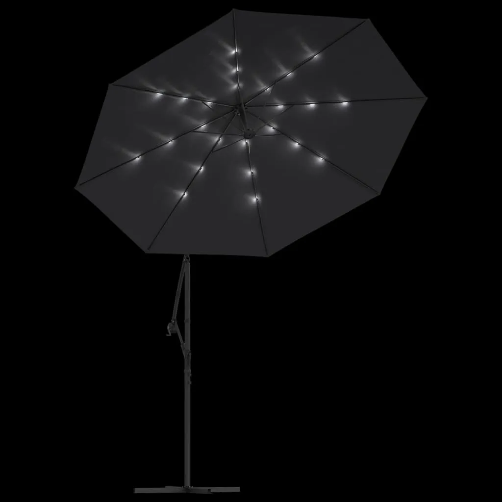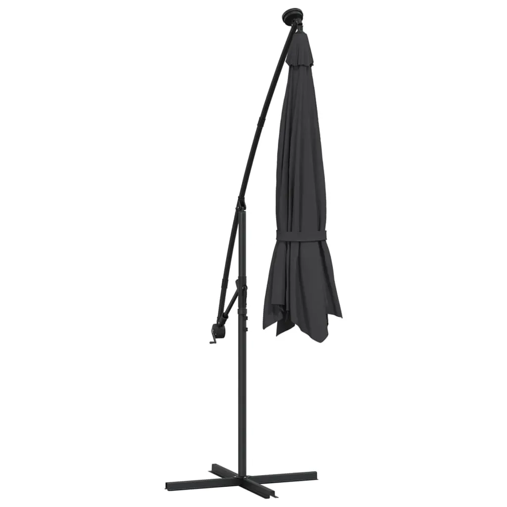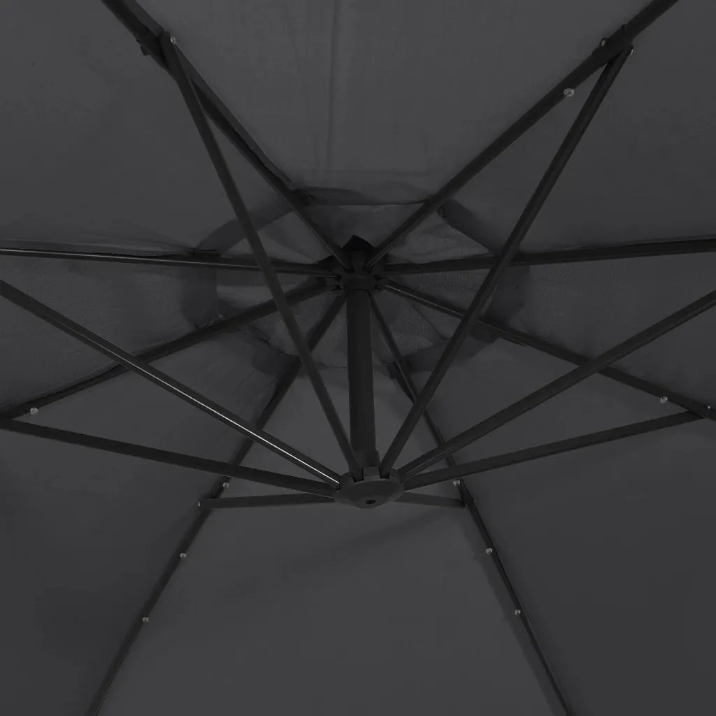 This elegant hanging parasol with LED lights is perfect to create some shade and protect you from the sun's harmful UV rays. Made of UV protective and anti-fade polyester, the parasol cover provides you with optimum protection against the sun and is easy to clean. It features 24 solar-powered LEDs to automatically illuminate your outdoor living space and create a cosy and romantic ambience when the sun goes down. It comes with a sturdy cross base to add stability. The exclusive design of this parasol allows you to tilt the parasol to block the sun as it heads down towards the horizon. The strong steel pole, along with the 8 durable ribs, makes the parasol very stable and durable. Our garden umbrella can be easily opened and closed thanks to the crank mechanism. The item is easy to assemble. Please note that we recommend treating the umbrella fabric with a waterproofing spray if it is subjected to heavy rainfall.