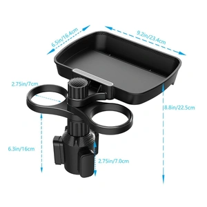 Optimize your car's interior space with this adjustable car cup holder and rotating tray. Designed to securely hold drinks and provide a practical platform for snacks or small meals, it is perfect for those on the go. Its adjustable base fits most car cup holders, while the 360-degree rotating tray allows easy access to your items without hassle. Durable and compact, this car tray is a versatile addition to any vehicle.