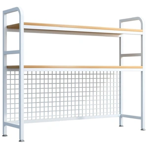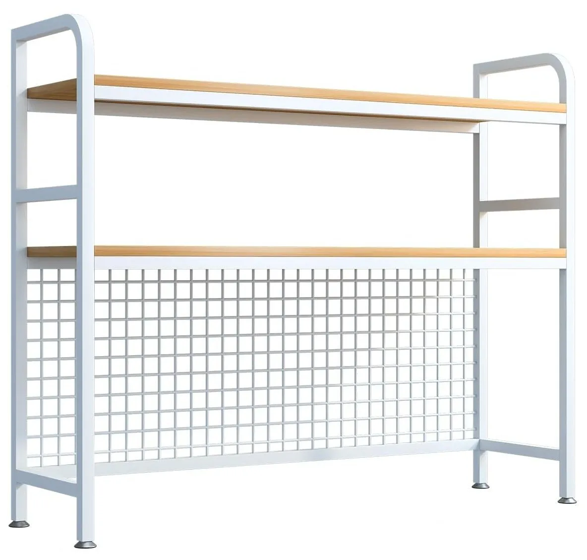 CARLA HOME 2-Tier Metal Desktop Hutch Bookshelf with Grid Panel for Computer Desk and Office Countertop