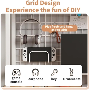 - CUSTOMIZABLE GRID PANEL DISPLAY: Personalize your desk setup with the integrated metal grid panel—perfect for hanging photos, keys, headphones, or decorative items. Includes bonus hooks for flexible organization.