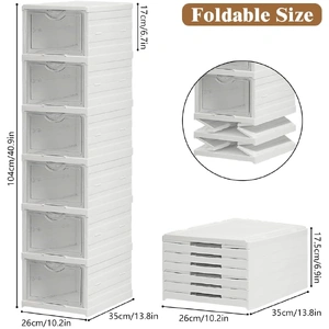 - FOLDABLE & EASY TO ASSEMBLE: Designed for hassle-free setup, this shoe storage box folds flat when not in use and pops open in seconds. No tools or complicated instructions required—just simple, convenient storage.