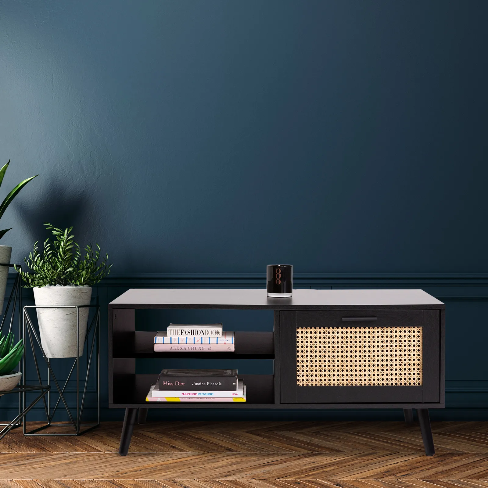 The two open shelves are perfect for storage of coffee table books, personal decor items and the remote control, while the large drawer with rattan feature panel gives you plenty of space to keep your living room organized.