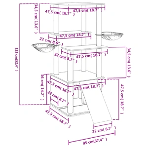 Keep your lovely cats entertained endlessly with this all-in-one cat tree! All-in-one cat tower: The multi-level cat furniture is designed with 2 baskets, a house, a ladder and platforms, providing a perfect place for your cats to climb, perch, scratch, hide, and also relax.Soft plush material: The extra-thick and soft plush is well ventilated, scratch-resistant, super comfy and warm.Natural sisal posts: The resilient and strong natural sisal posts of the cat scratching tree are perfect for your beloved cats to satisfy their scratching instinct and prevent them from scratching your furniture.