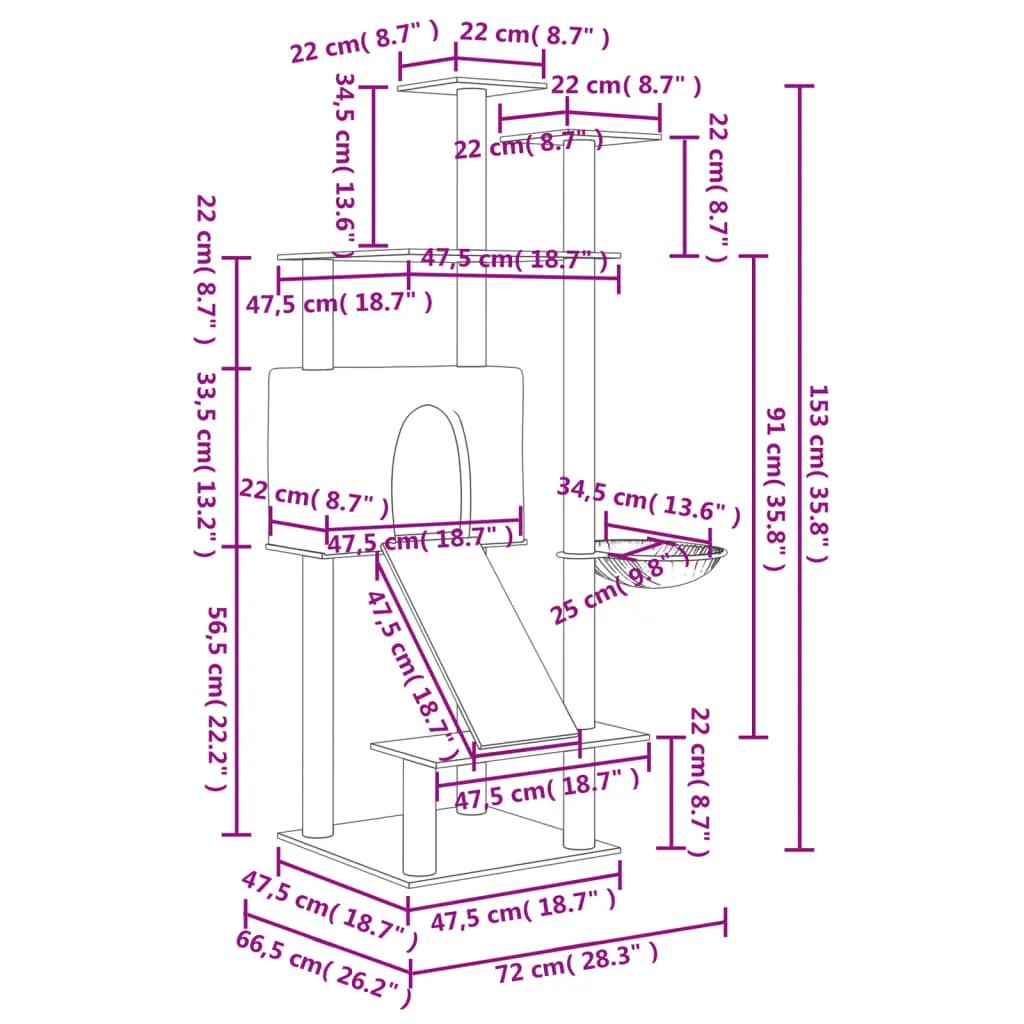 Keep your lovely cats entertained endlessly with this all-in-one cat tree! All-in-one cat tower: The multi-level cat furniture is designed with a house, a basket, a ladder and platforms, providing a perfect place for your cats to climb, perch, scratch, hide, and also relax.Soft plush material: The extra-thick and soft plush is well ventilated, scratch-resistant, super comfy and warm.Natural sisal posts: The resilient and strong natural sisal posts of the cat scratching tree are perfect for your beloved cats to satisfy their scratching instinct and prevent them from scratching your furniture.