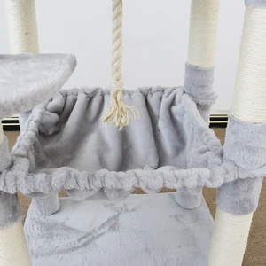 Cats are crazy creatures who need plenty of stimulation to keep them happy. If you have a cat, this is the perfect scratching post for your furry friend! The Supreme Palace features soft platforms and resting areas so they can take some much-needed snooze time while getting their nails groomed at night or relaxing in an adorable plush lounge during day-time naps on these beautifully designed furnishings that will make anyone forget about having an indoor feline ever again--especially if it's got two levels like ours does!.
