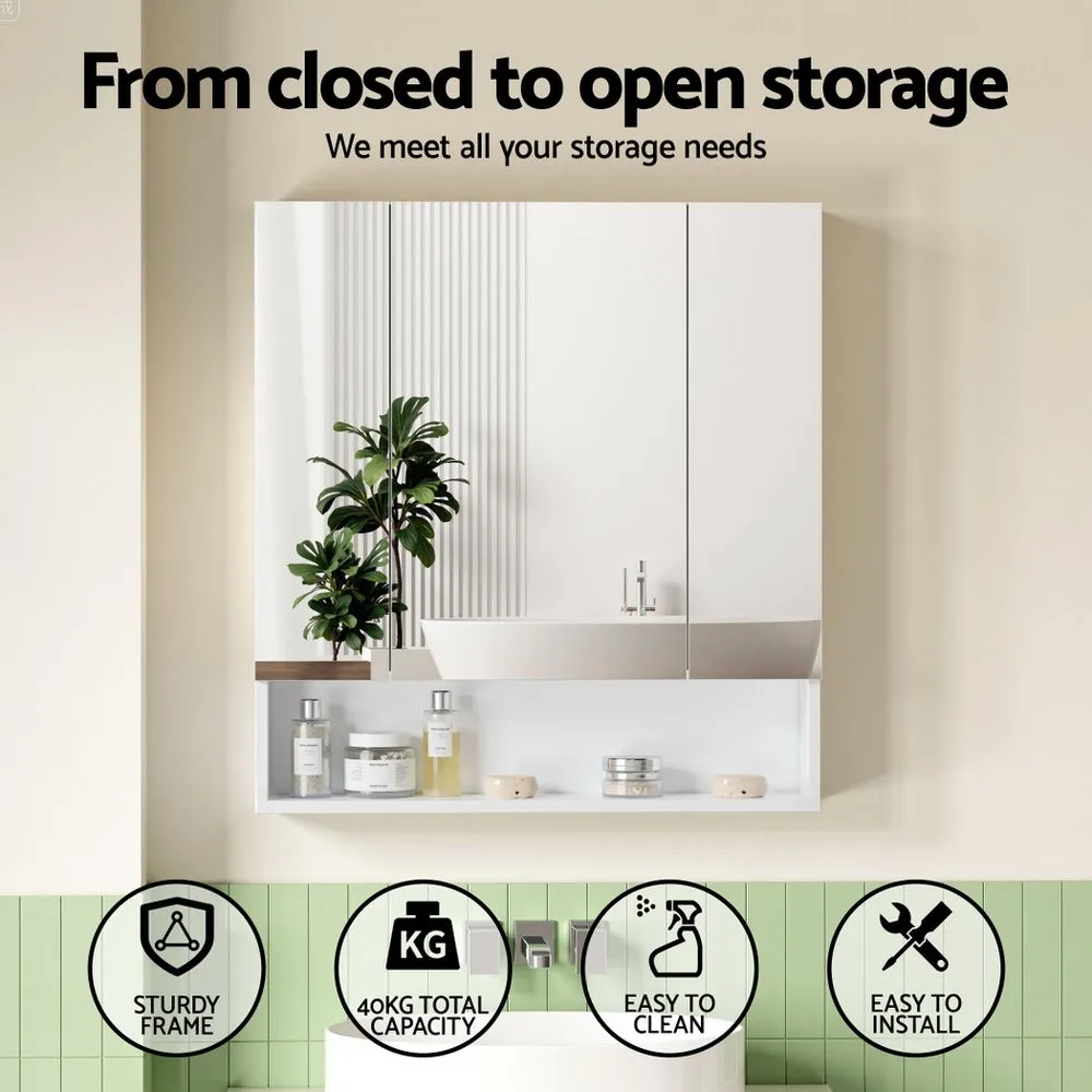 The Cefito Medicine Cabinet combines sophisticated design with practical functionality for the Australian bathroom. Its triple mirrored doors not only provide multiple reflection angles for grooming but also conceal generous storage space behind them. The clever addition of an open shelf offers convenient access to everyday items like hand soap or perfume.