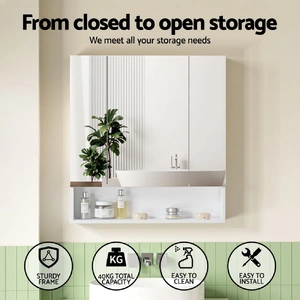 Inside the cabinet, you'll find fully adjustable shelving that can be customised to fit your specific storage needs. Whether you need space for tall skincare products, first-aid supplies, or shaving equipment, the flexible layout accommodates it all. The mirrors feature safety-backed glass with explosion-proof film, making this cabinet suitable for family homes.