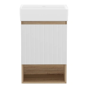Upgrade Your Bathroom with Our Stylish 445mm Vanity Unit. Add a sleek, contemporary touch to your bathroom with our 445mm Vanity Unit. Crafted from durable timber with a stylish striped door design, this vanity brings both functionality and modern flair to your space. The soft-closing door mechanism ensures smooth, quiet operation—perfect for busy households.