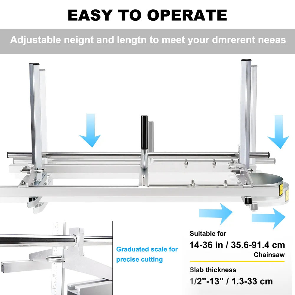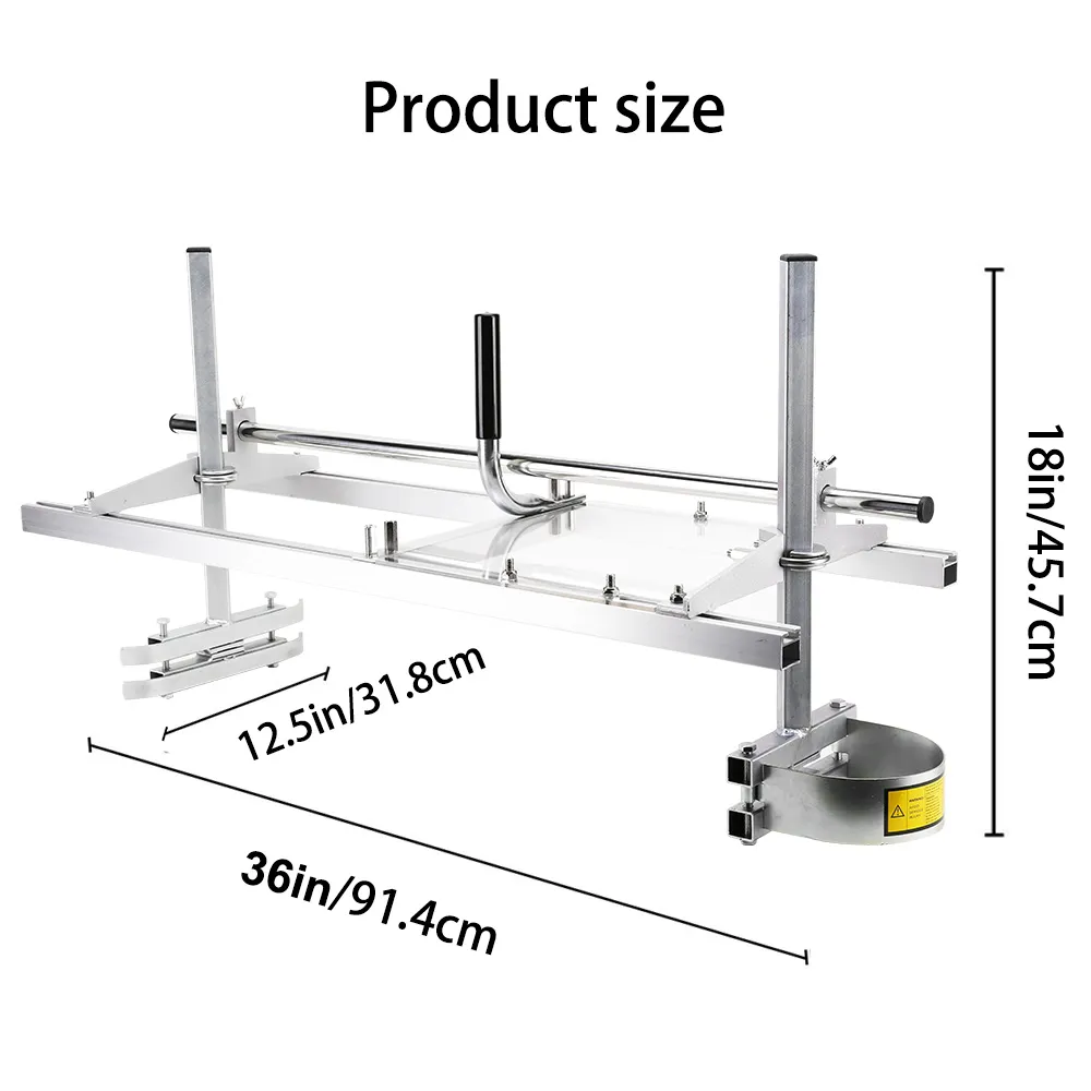 The height and length of our saw mill are both adjustable to meet your different needs. It is compatible with a 14" -36" chainsaw(not included).