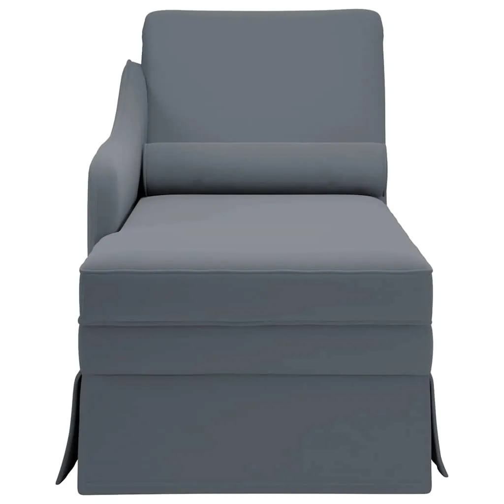 Brighten up your living area and unwind in style with this great chaise lounge! Our comfortable chaise lounge with its elegant look and functionality is a timeless and practical addition to any room. Soft and cosy velvet fabric: This chaise lounge is adorned with a velvet fabric that is exceptionally soft and comfortable, offering a delightful sensation against the skin.Comfortable seating experience: This chaise lounge is filled with high resilience foam that contours to your body, offering tailored support that helps reduce strain on your neck, shoulders, back and waist.Practical bolsters: The included bolsters provide extra comfort and support, especially for the lower back or neck, and add a decorative element to the living room sofa.Versatile use: This chaise lounge is a versatile and stylish addition to any home or office leisure area. Whether you place it near the living room sofa or create a cosy corner in your bedroom or study, it will enhance the aesthetic of your living space. Good to know:Due to transportation, you may notice some wrinkles in the fabric, especially on the skirt. For a neater appearance, we recommend ironing them out.Good to know:When you open the box, you may notice wrinkles on the fabric cover. To smooth them out, gently use a steam iron on the fabric before or after assembly for a neat finish.