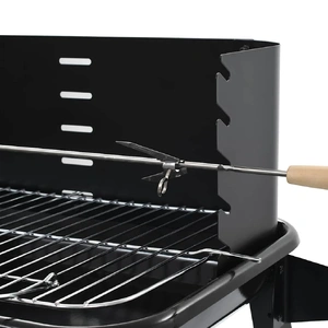Enjoy roasting and grilling with our charcoal BBQ stand! This grill stand has a sturdy and durable construction yet a compact design. Easily adjust the rack height from 71 to 85 cm to make the best use of the charcoal's heat. There is also a side shelf and a lower shelf, on which you can conveniently store your barbecue accessories. With the chrome-plated cooking grid and roaster kit, your BBQ will be easy and fun! Equipped with 2 wheels, this grill can be moved around effortlessly. Do not use the barbecue in a confined and/or habitable space e.g. houses, tents, caravans, motor homes, boats. Danger of carbon monoxide poisoning fatality.