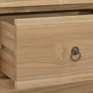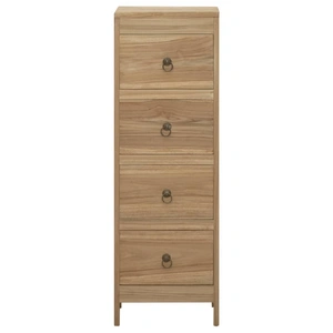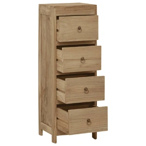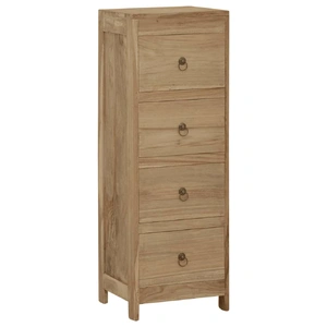 This chest of drawers, made of solid teak wood, exudes a vintage charm and will be the centre of attraction for your interior.Premium material: Solid teak wood is a beautiful natural material. It has been seasoned, kiln dried and then treated with a rustic finish. Teak wood is known for its exceptional strength and weather resistance.Storage function: This side cabinet features 4 drawers, providing ample space for storing your clothing, books, and various other items.Practical top: The sturdy top is ideal for displaying decorative objects, photo frames and other decorative items. Warning:In order to prevent overturning, this product must be used with the wall attachment device provided.