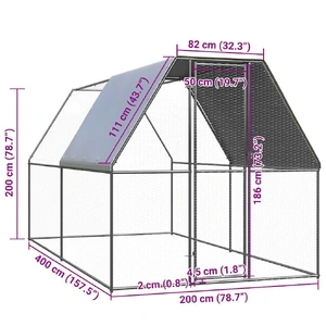 This practical and spacious chicken cage is a perfect choice as an outdoor enclosure for your chickens, hens, ducks and other small animals and keeps them comfortable. Durable and sturdy frame: The chicken coop is made of galvanised steel. Steel is an exceptionally hard and strong material. It offers sturdiness and stability. Galvanisation provides better protection against corrosion and is useful for products that'll be used outdoors as well as in harsh environments.Water-resistant roof: The hen cage has a polyethylene roof that is water-resistant and UV-resistant, providing protection from sun, rain, snow and other weather conditions.Ample activity room: The chicken cage provides your chickens with ample activity room to walk around with ease. Besides, it is also suitable for other small animals such as birds, rabbits, ducks, geese, etc.Extra security: The hinged door with a lockable latch system of the walk in chicken coop ensures extra security and safety for your chickens.