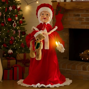 Motion and sound sensor activation bring her to life as guests pass by, making her a delightful presence in entryways, living rooms or anywhere that needs extra Christmas spirit.