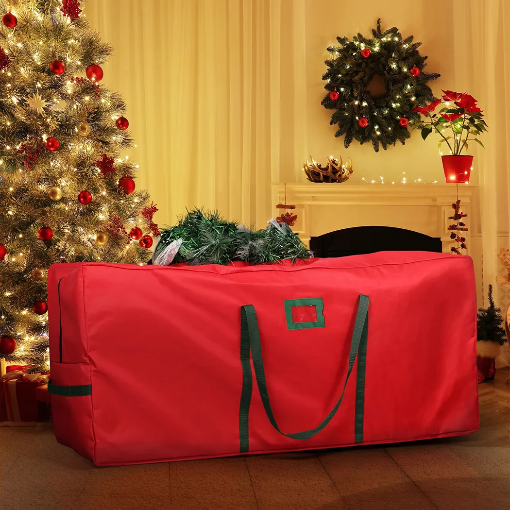 Featuring a sturdy zipper, reinforced handles for effortless carrying, and a convenient card slot for easy labeling, this red storage bag is both functional and stylish. The material’s robust construction safeguards against dust, moisture, and damage, making it ideal for long-term storage. Simplify your post-holiday cleanup and ensure your tree is ready for next season with this reliable and durable storage solution.