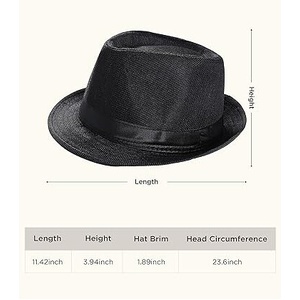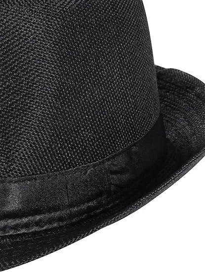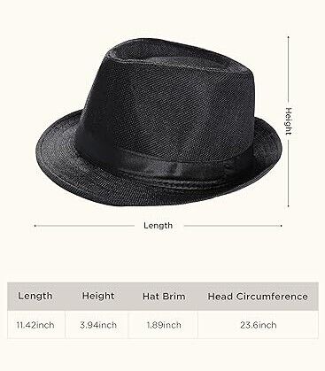 CLASSIC TRILBY HAT Fedora Cap Costume Gangster - Black- One Size (58cm)