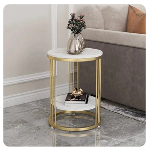 Placed matching on either side of a sofa or bed, served as nightstand or display table.