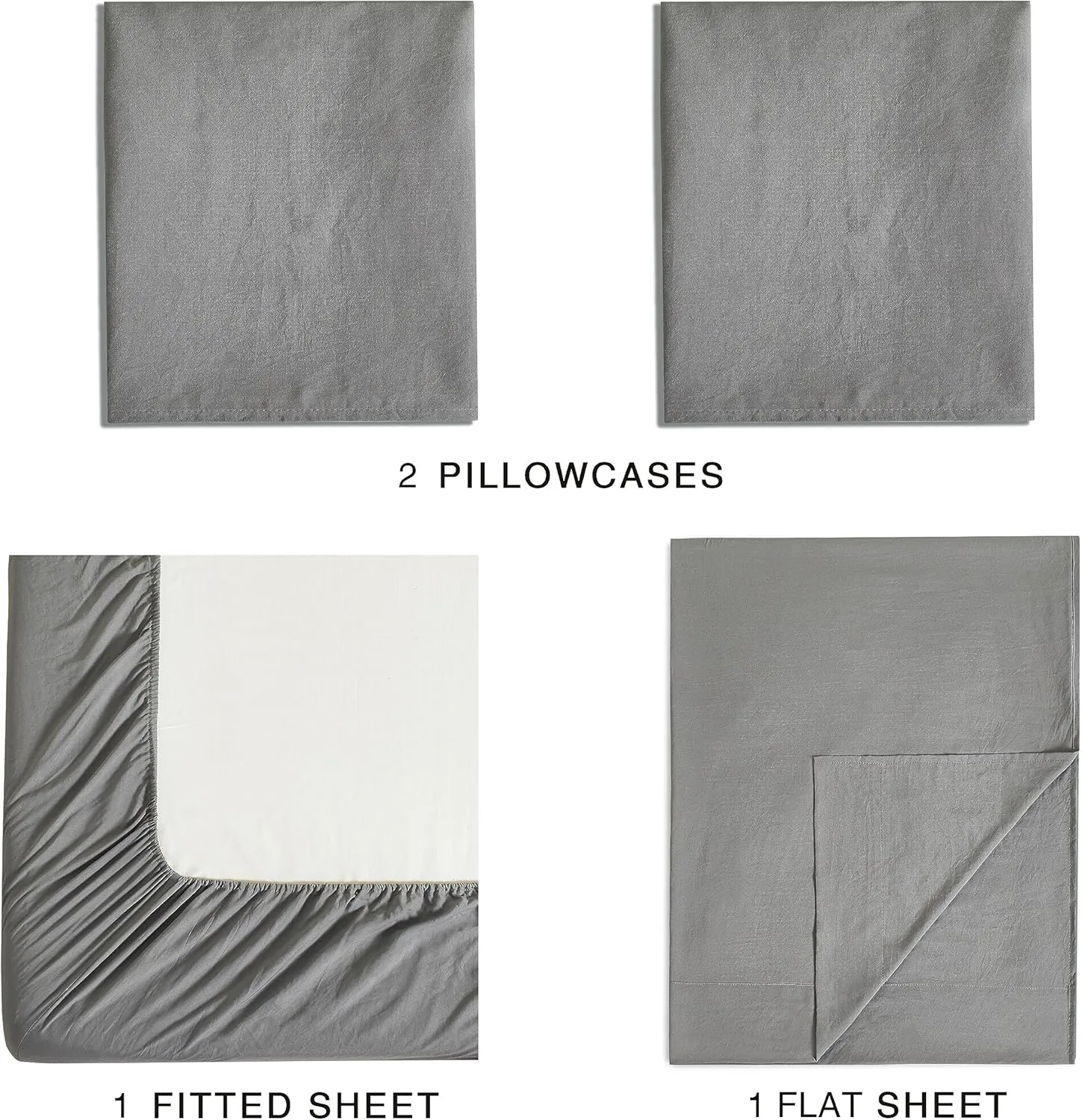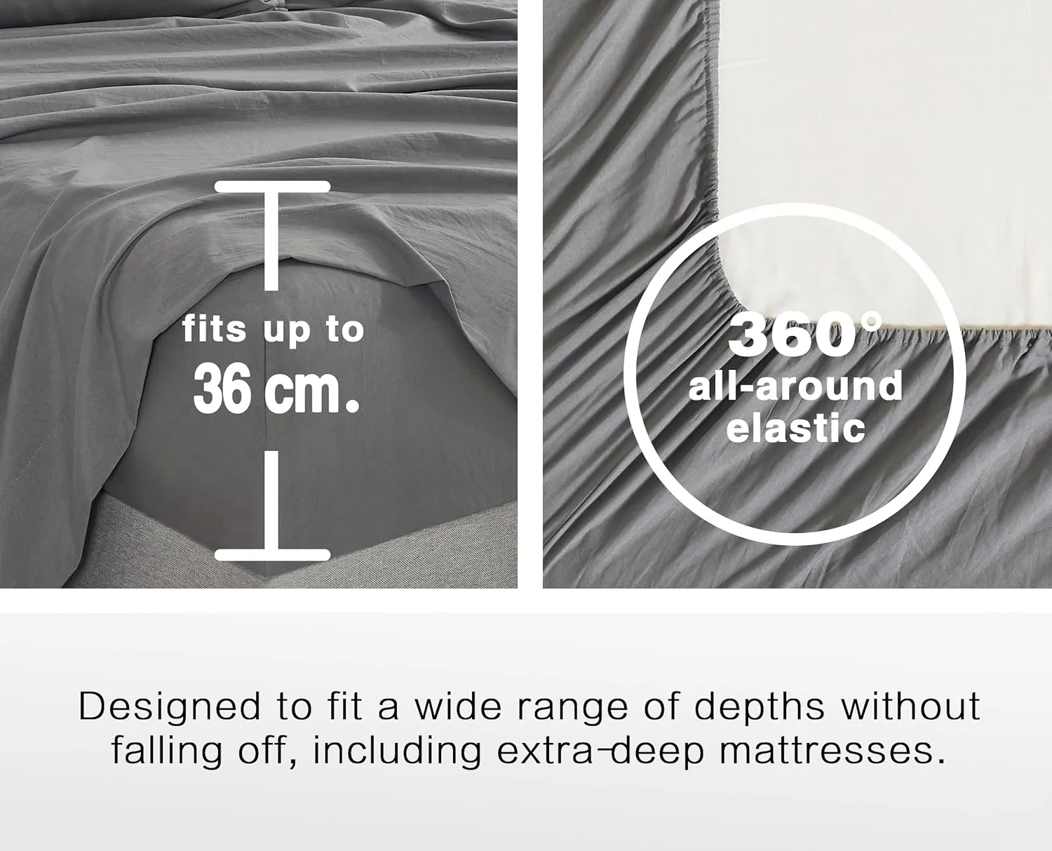 CleverPolly Vintage Washed Microfibre Sheet Set with 2 Pillowcases - Grey - Double