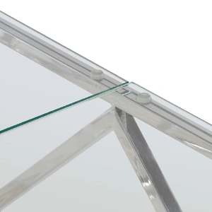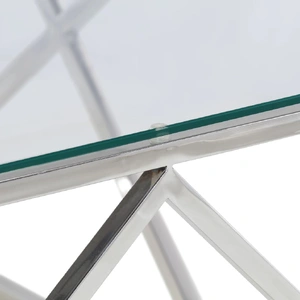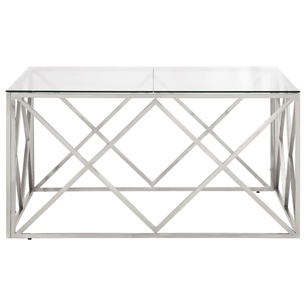 Combining functionality and beauty, this coffee table will be the focal point of your room. Glass top: The top of the side table provides a visible and ample surface to place snacks, drinks, vases, fruit bowls, or other decorative items. Sturdy and stable frame: The stainless steel frame of the living room table ensures sturdiness and stability. Easy maintenance: This accent table with stain-resistant surface is easy to wipe clean and you can effortlessly keep the table looking its best. Simple design: This sofa table has a simple and modern design that complements any room decor.
