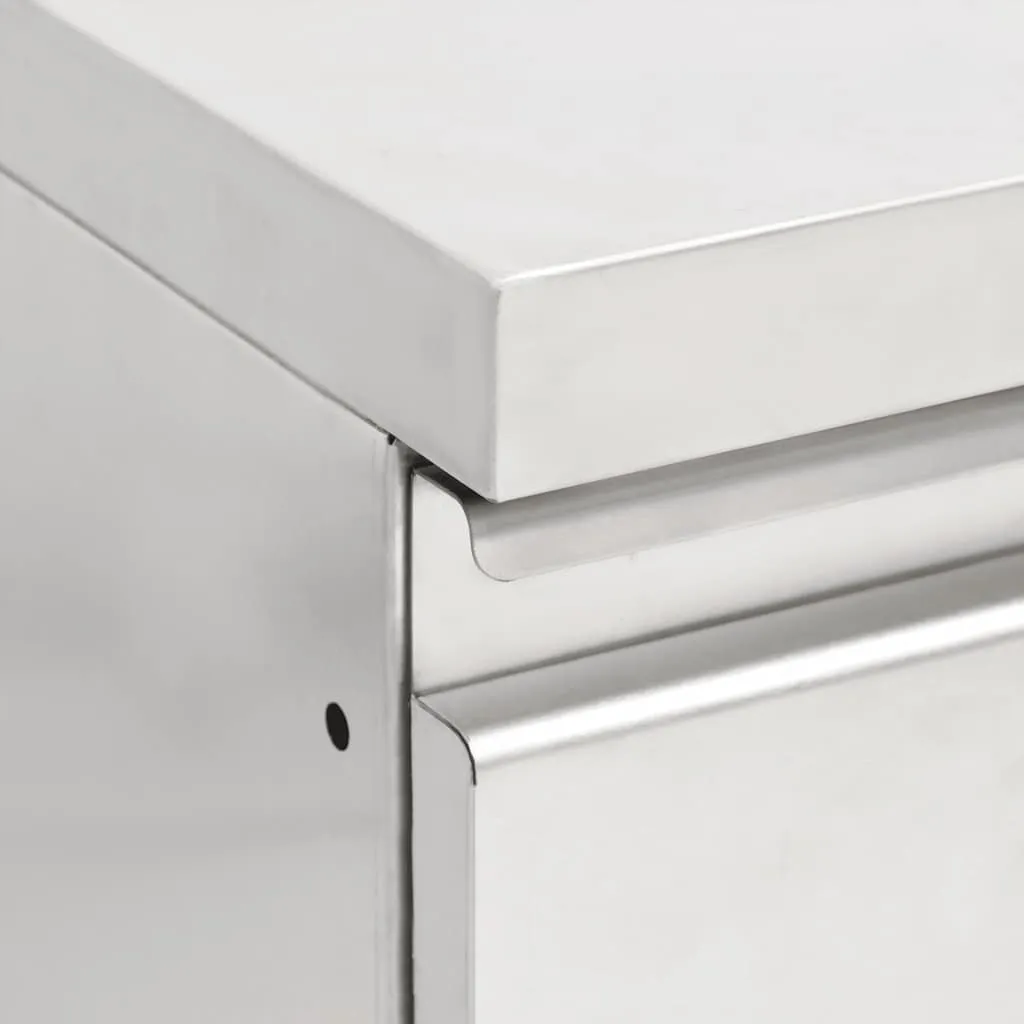 If you want to keep your kitchen supplies, the commercial kitchen cabinet is a perfect choice for you. It can be widely used in restaurant, hotel, food production, gastronomy use or garage, workplace and home use. Made of quality stainless steel, the storage cabinet is robust, anti-corrosive and easy to clean. The cabinet provides ample storage space for cleaning equipment and accessories. Additionally, the adjustable feet keep the cabinet level on uneven floors. The 10 cm backsplash and water pipe hole are also included. You can find the commercial sink cabinet, drainboard cabinet and work table cabinet in our webshop. They can be connected with each other to meet your specific needs. Assembling accessories are included in the delivery.