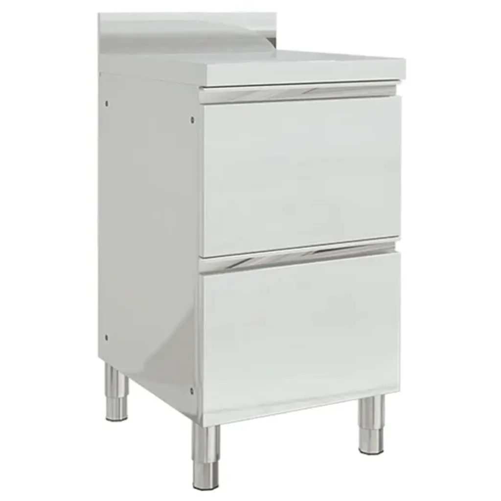 If you want to keep your kitchen supplies, the commercial kitchen cabinet is a perfect choice for you. It can be widely used in restaurant, hotel, food production, gastronomy use or garage, workplace and home use. Made of quality stainless steel, the storage cabinet is robust, anti-corrosive and easy to clean. The cabinet provides ample storage space for cleaning equipment and accessories. Additionally, the adjustable feet keep the cabinet level on uneven floors. The 10 cm backsplash and water pipe hole are also included. You can find the commercial sink cabinet, drainboard cabinet and work table cabinet in our webshop. They can be connected with each other to meet your specific needs. Assembling accessories are included in the delivery.