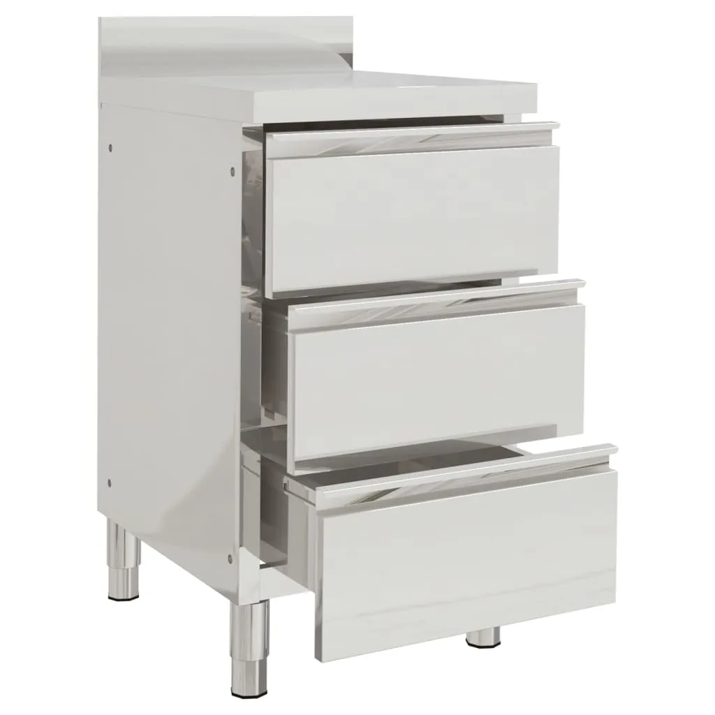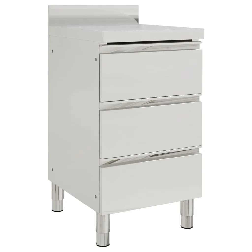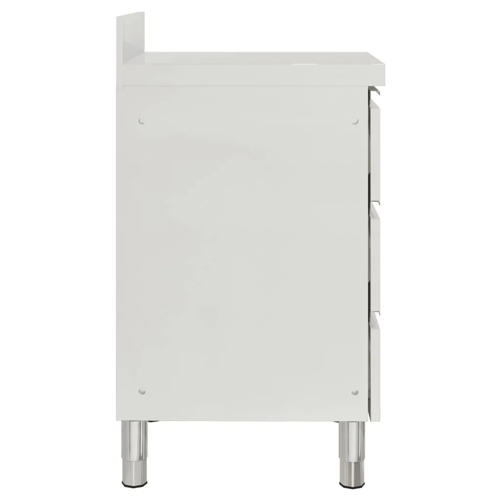 If you want to keep your kitchen supplies, the commercial kitchen cabinet is a perfect choice for you. It can be widely used in restaurant, hotel, food production, gastronomy use or garage, workplace and home use. Made of quality stainless steel, the storage cabinet is robust, anti-corrosive and easy to clean. The cabinet provides ample storage space for cleaning equipment and accessories. Additionally, the adjustable feet keep the cabinet level on uneven floors. The 10 cm backsplash and water pipe hole are also included. You can find the commercial sink cabinet, drainboard cabinet and work table cabinet in our webshop. They can be connected with each other to meet your specific needs. Assembling accessories are included in the delivery.