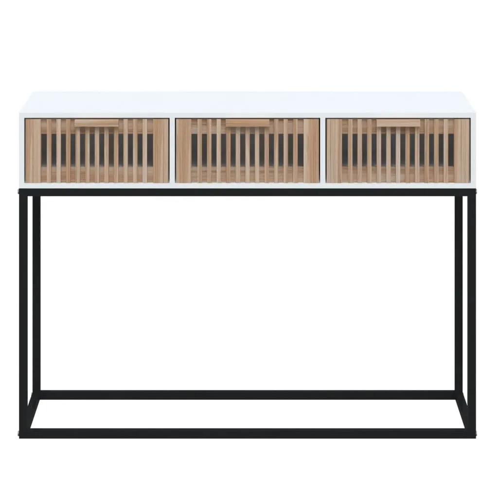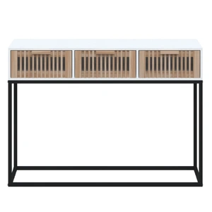 Add a Scandinavian touch to your room with this classic console table! It is a practical and decorative addition to your home decor. Durable material: The engineered wood is of exceptional quality with smooth surface and also features strength, stability and resistance to moisture.Ample storage space: Equipped with 3 drawers, the hall table offers ample storage space for keeping various daily essentials well organised and within easy reach.Sturdy top: The table for under mirror has a sturdy top, which is perfect for placing your cups, books, and some decorative items.Metal feet: The metal feet of the side table ensure sturdiness and stability. Warning:To prevent it being overturned, this product must be used with the provided wall attachment device. Good to know:To make assembly as easy as possible, each product is delivered with a manual.