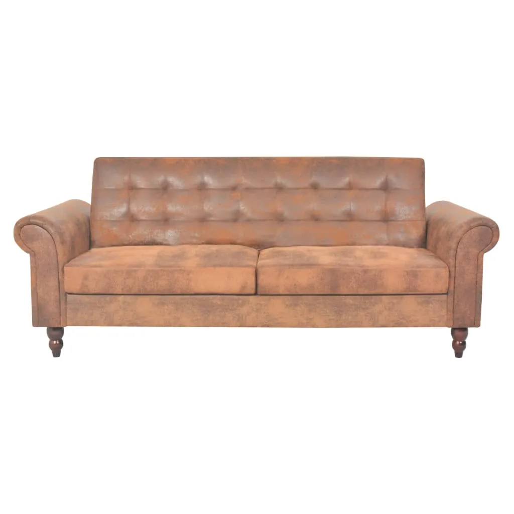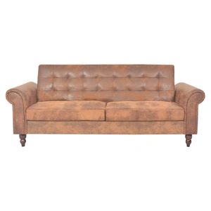 Our versatile, high-quality 2-seater sofa will be perfect for accommodating unexpected overnight guests, while providing a comfortable seating space during the day. Its classic Chesterfield look will complement any interior. The sleeper sofa has a high-quality wooden frame which is strong and durable and is upholstered in artificial suede. Its thickly-padded seat and backrest offer the utmost comfort. As a sofa, you can choose from various reclining settings for the backrest, so you can always find the most comfortable position. Assembly is easy.