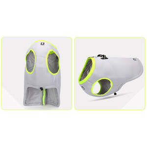 Dog Cooling vest. This cooling vest is super comfortable for your dog giving a feeling of comfort. Two D rings on the back for leash attaching A Velcro zipper on the back to fasten harness making it easy to put on and take off and two zippers on either side of the vest for easy adjustment. Simply add water on the vest and place vest on your dog, the water will slowly evaporate and cool your dog throughout the day.